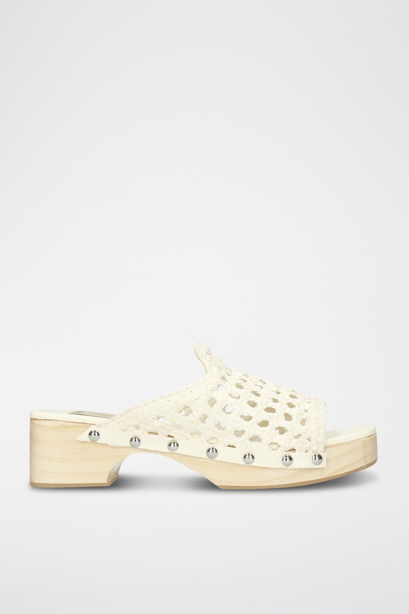 Sabots à talons en cuir.