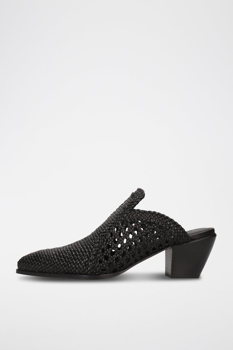 Mules à talons en cuir tressé.