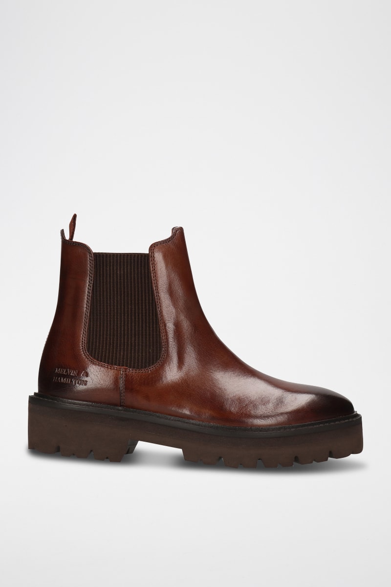 Melvin & Hamilton revendique un savoir-faire anglais dont les semelles cousues et le cuir de qualité sont les atouts majeurs. Minutieusement choisis, les cuirs Melvin & Hamilton sont entièrement teints à la main suivant un procédé spécifique qui a nécessité des années de recherche. Un aspect authentique qui fait de Melvin & Hamilton une marque incontournable.