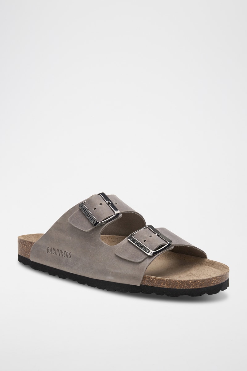 Mules en cuir - Gris