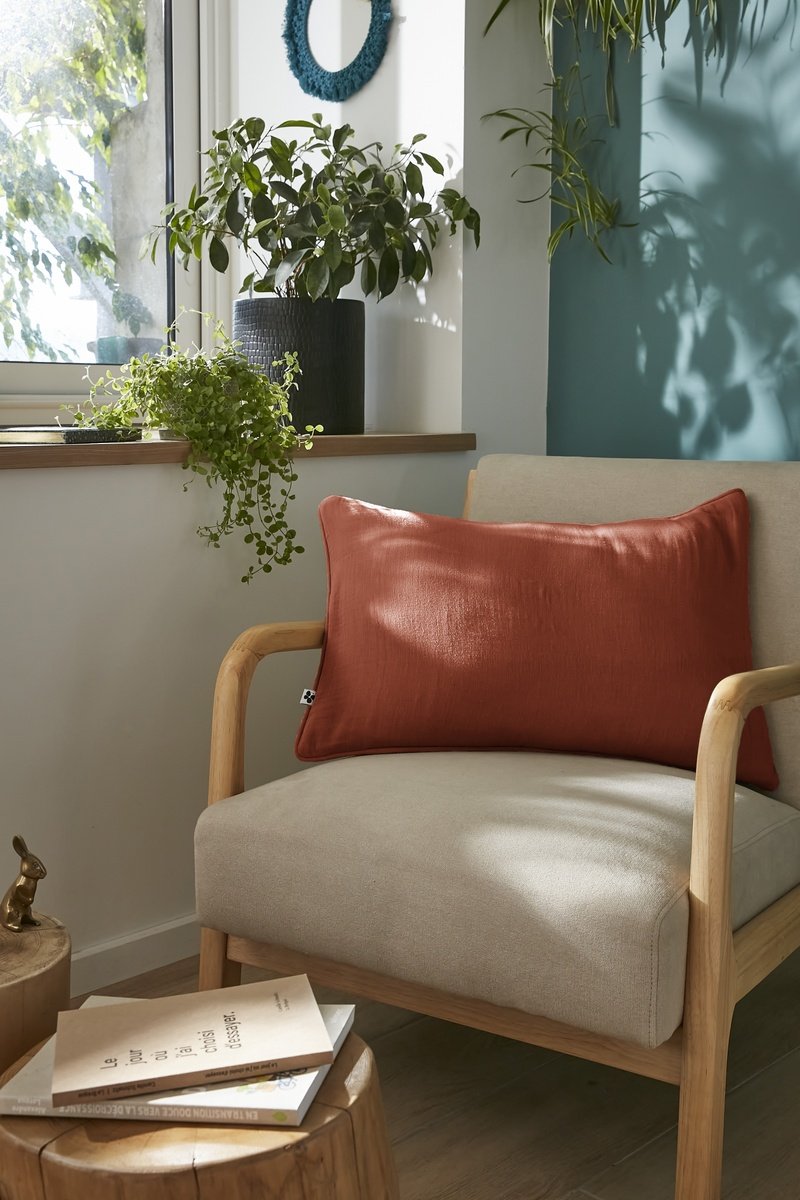Coussin en gaze de coton Gaïa - Rouge brique - 40 x 60 cm