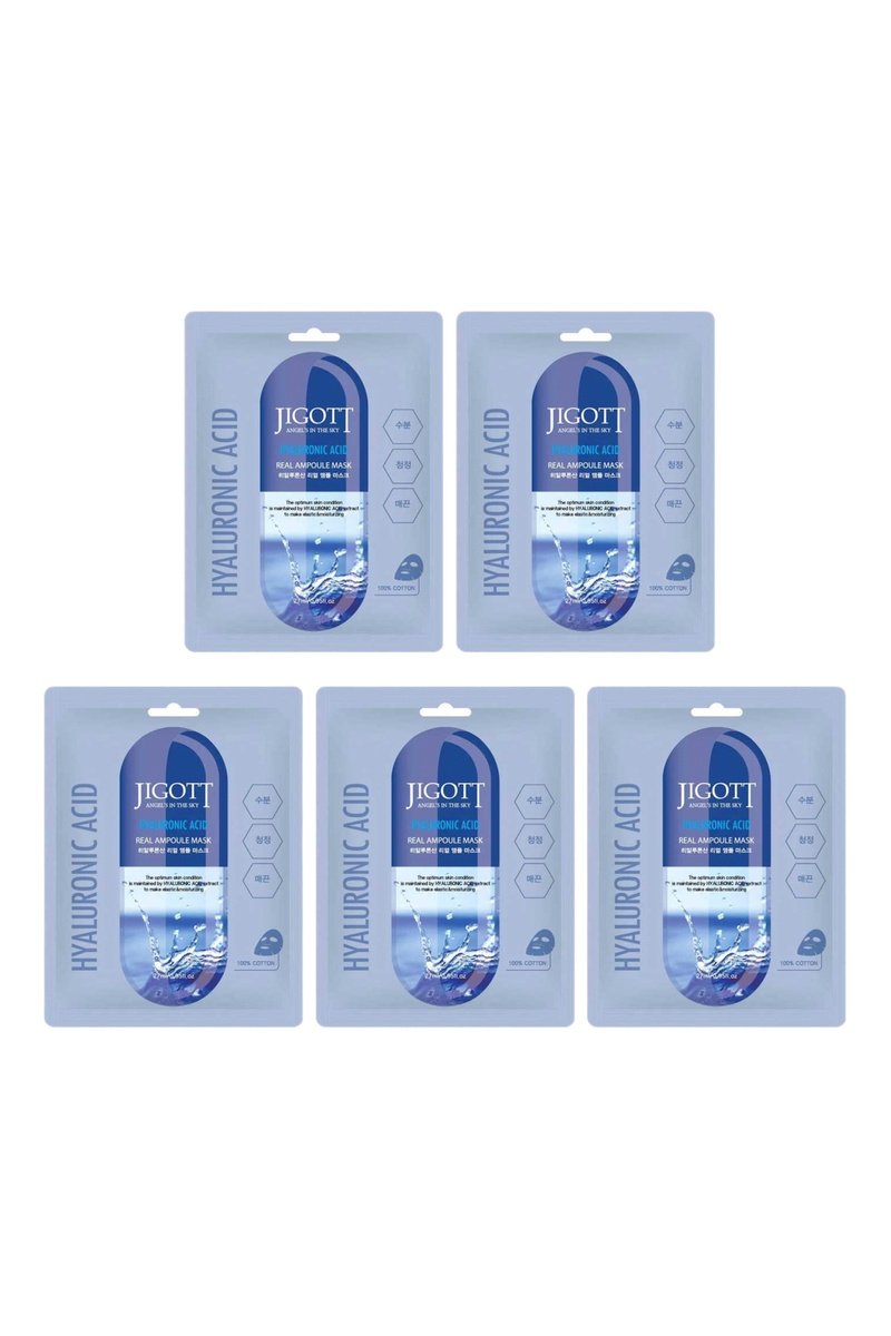 5 masques visage en feuille à l'acide hyaluronique - 5 x 27 ml