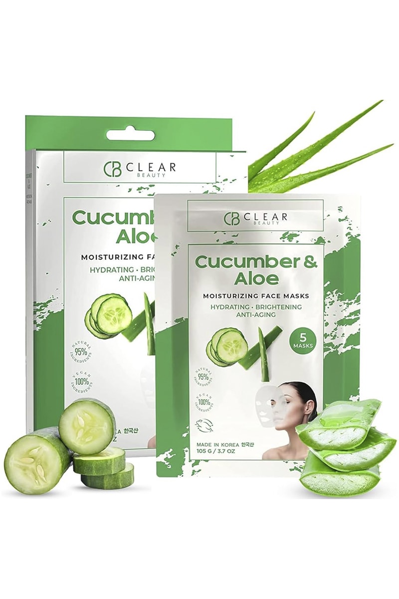 5 Masques Tissu Clair Beauty Concombre & Aloe.
