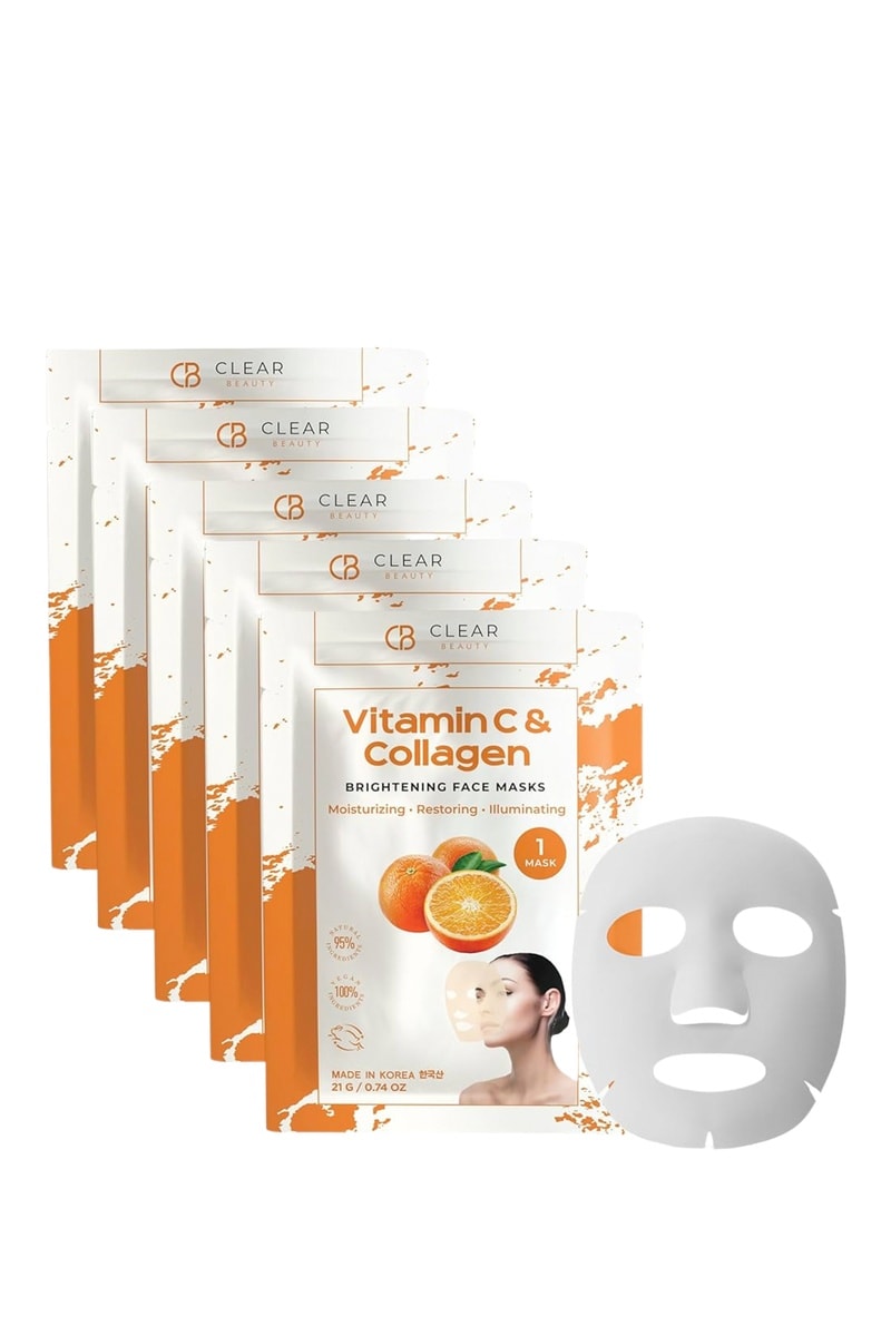 5 masques tissu Clear Beauty éclat vitamine C & collagène.