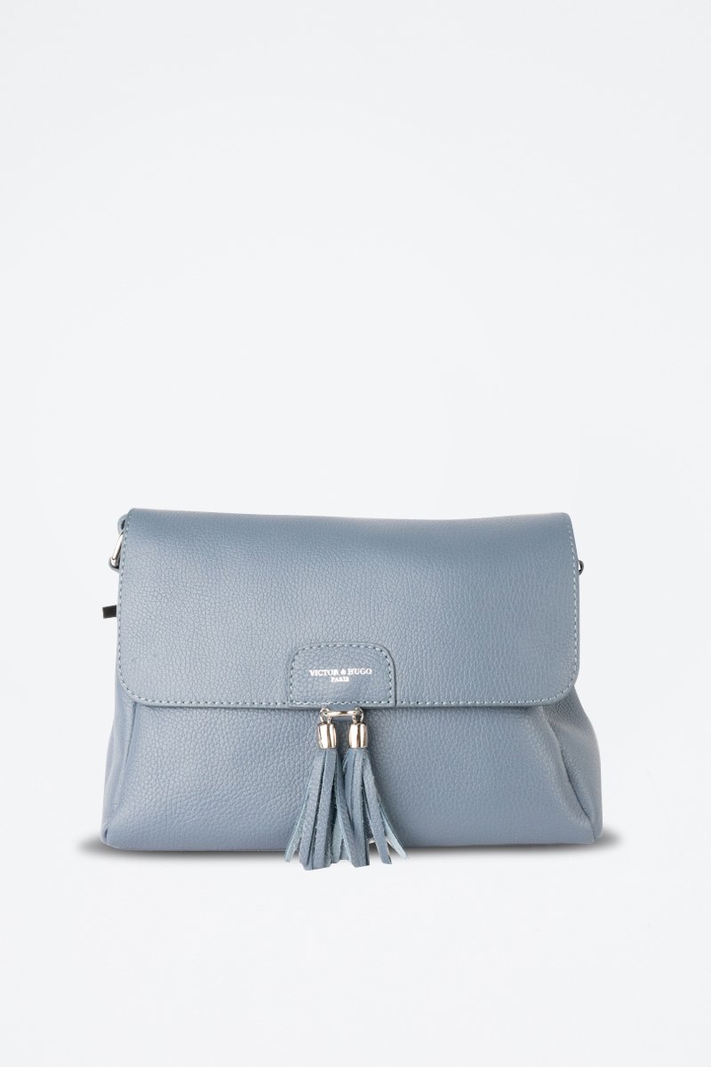 Sac bandoulière en cuir Indila - Bleu et argenté