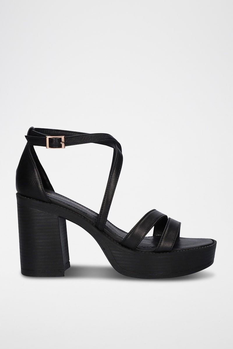Sandales à talons en cuir.