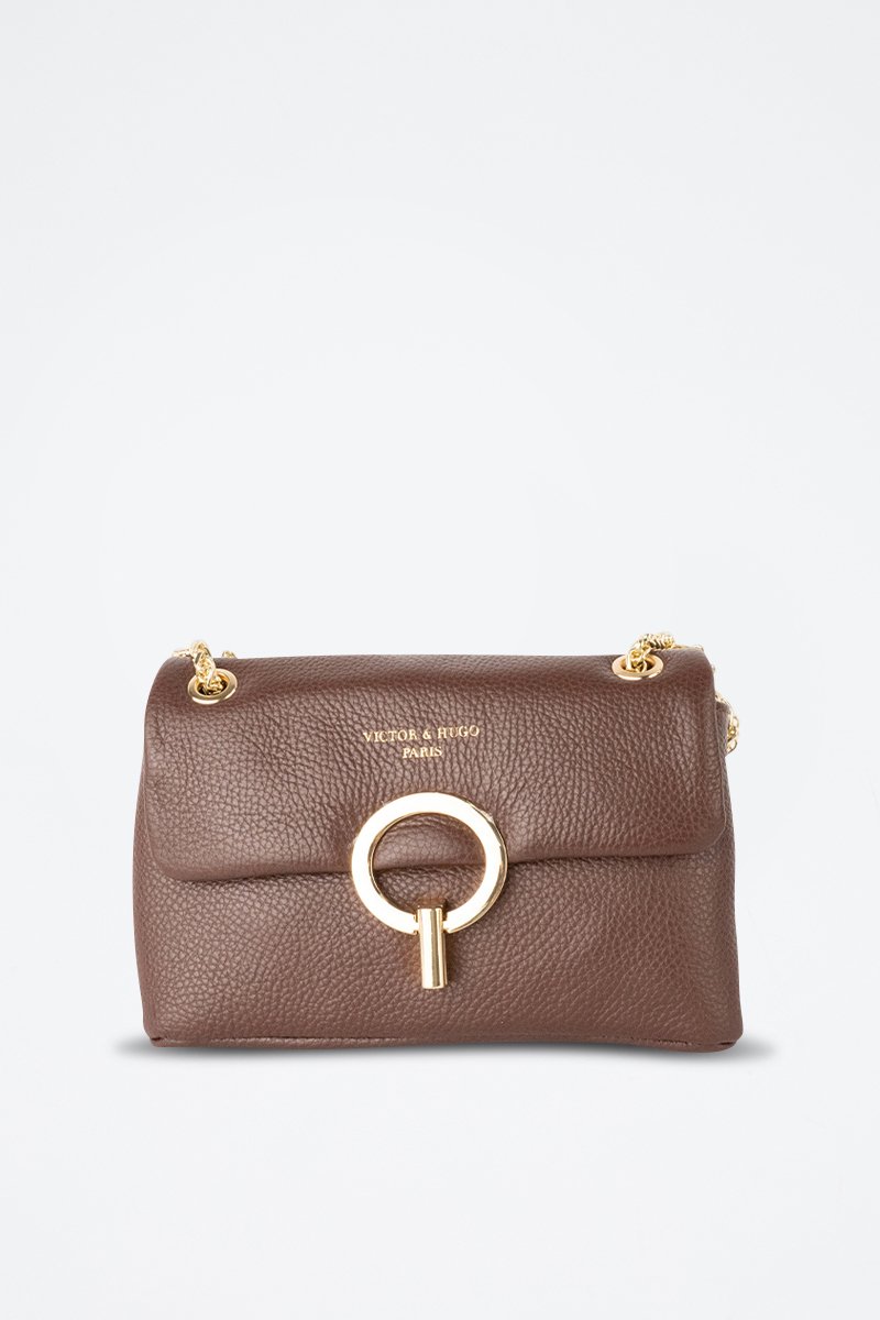 Sac bandoulière en cuir Sarya - Marron et doré