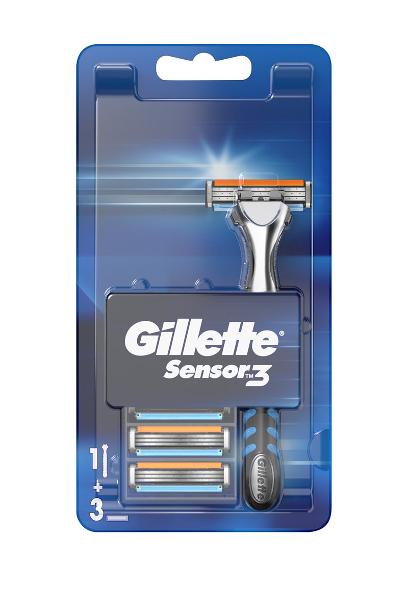 Le rasoir Gillette Sensor3 pour homme est doté de trois lames avec une bande Lubrastrip lui permettant de glisser facilement sur votre peau.