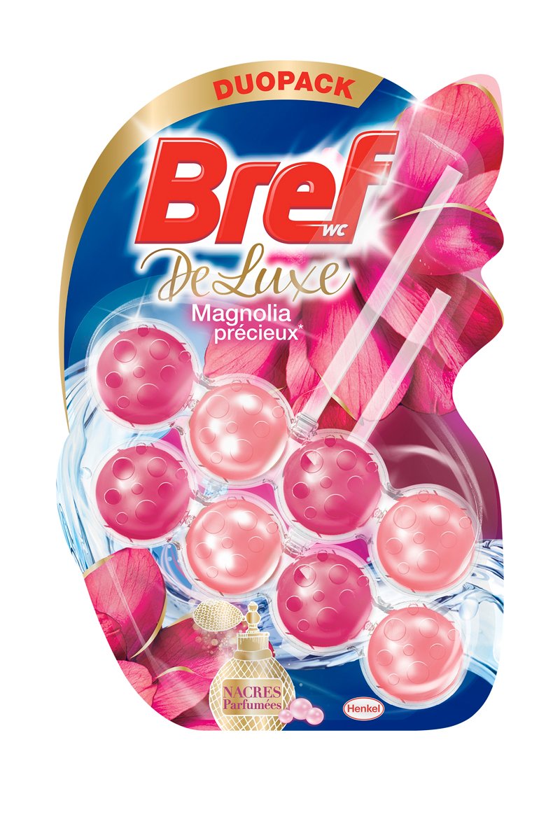 Bref WC DeLuxe Magnolia Précieux offre un parfum raffiné plus intense et longue durée activé à chaque chasse.