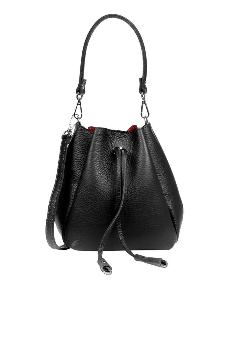 Sac seau en cuir grainé.