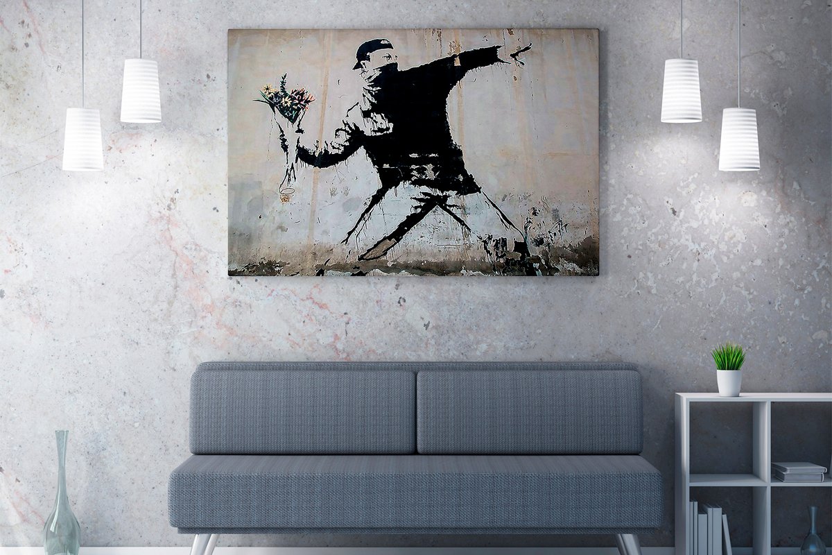 D'après l'oeuvre Rage, le lanceur de fleurs de Banksy.