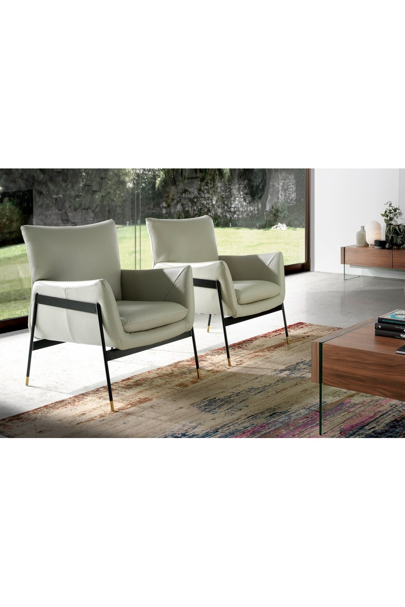 Fauteuil - Gris perlé et noir - En cuir