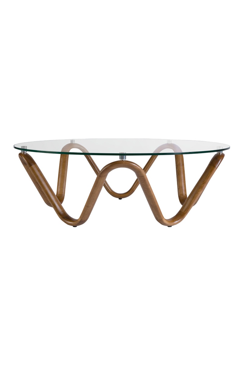 Table basse en noyer et verre - 115 x 38 x 115 cm