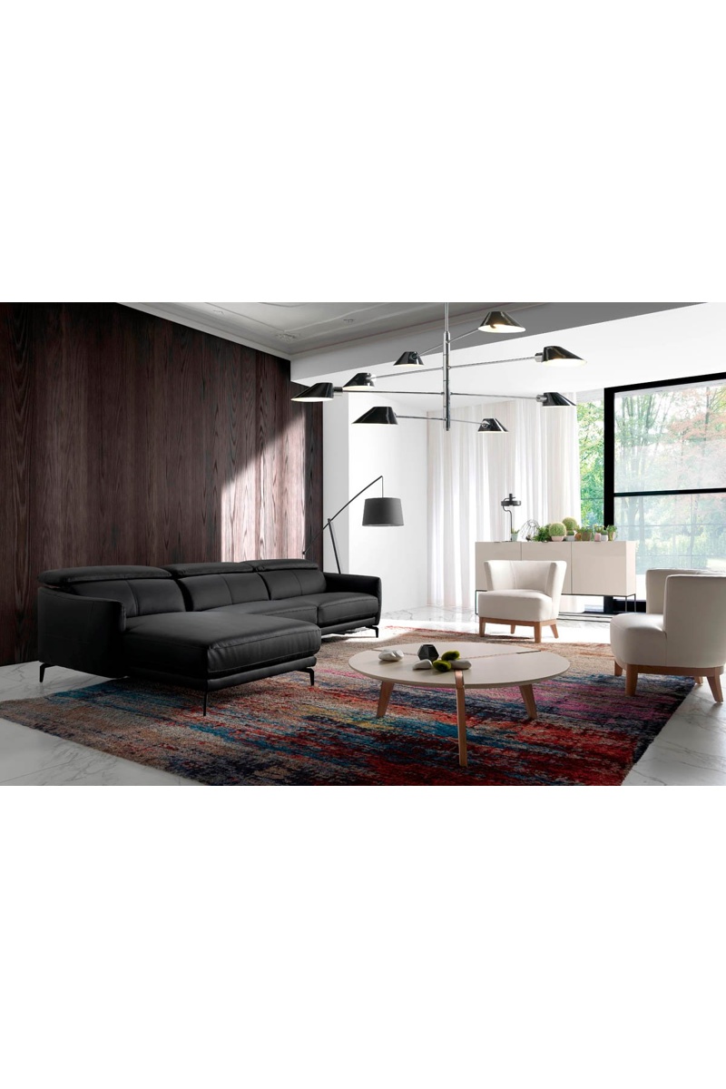 Canapé d'angle gauche - Noir - 3 places - En cuir de vachette