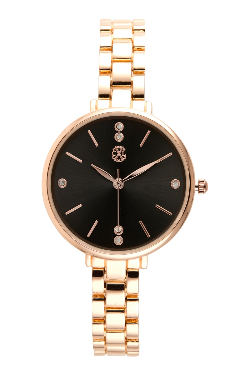Montre à quartz en alliage - Doré rose et noir