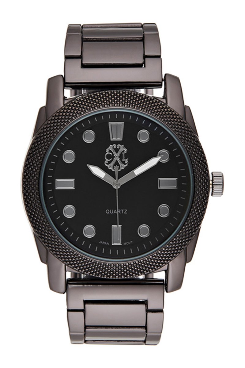 Montre à quartz en acier - Noir et anthracite