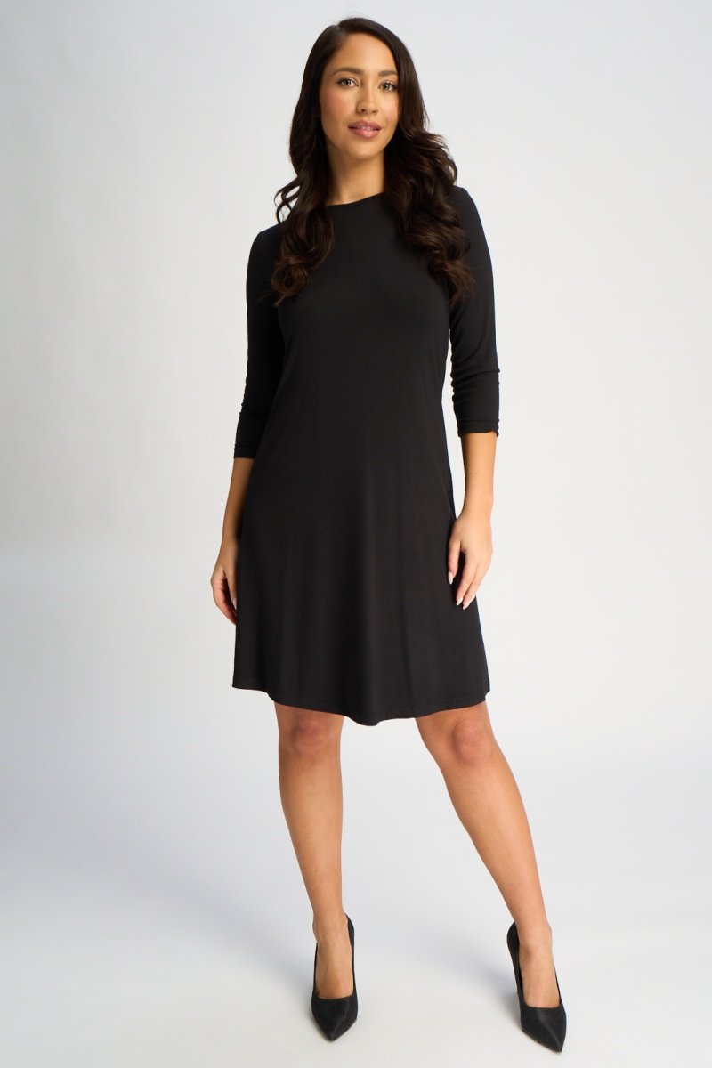 Robe trapèze à manches 3/4.