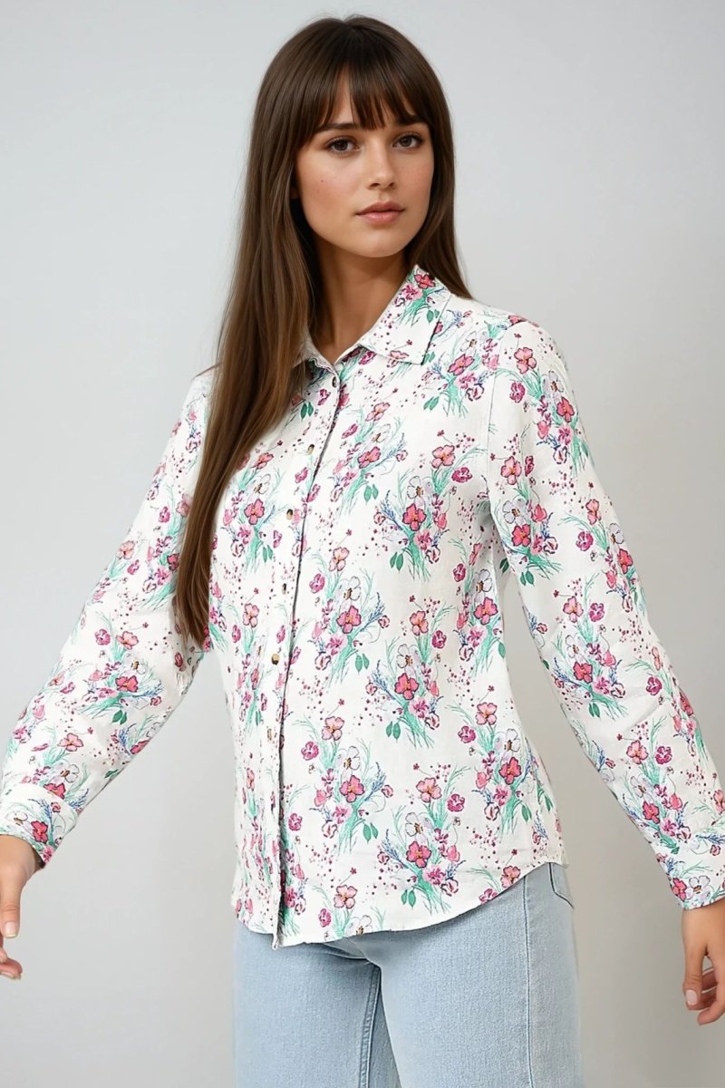 Chemisier en lin à manches longues boutonnées.