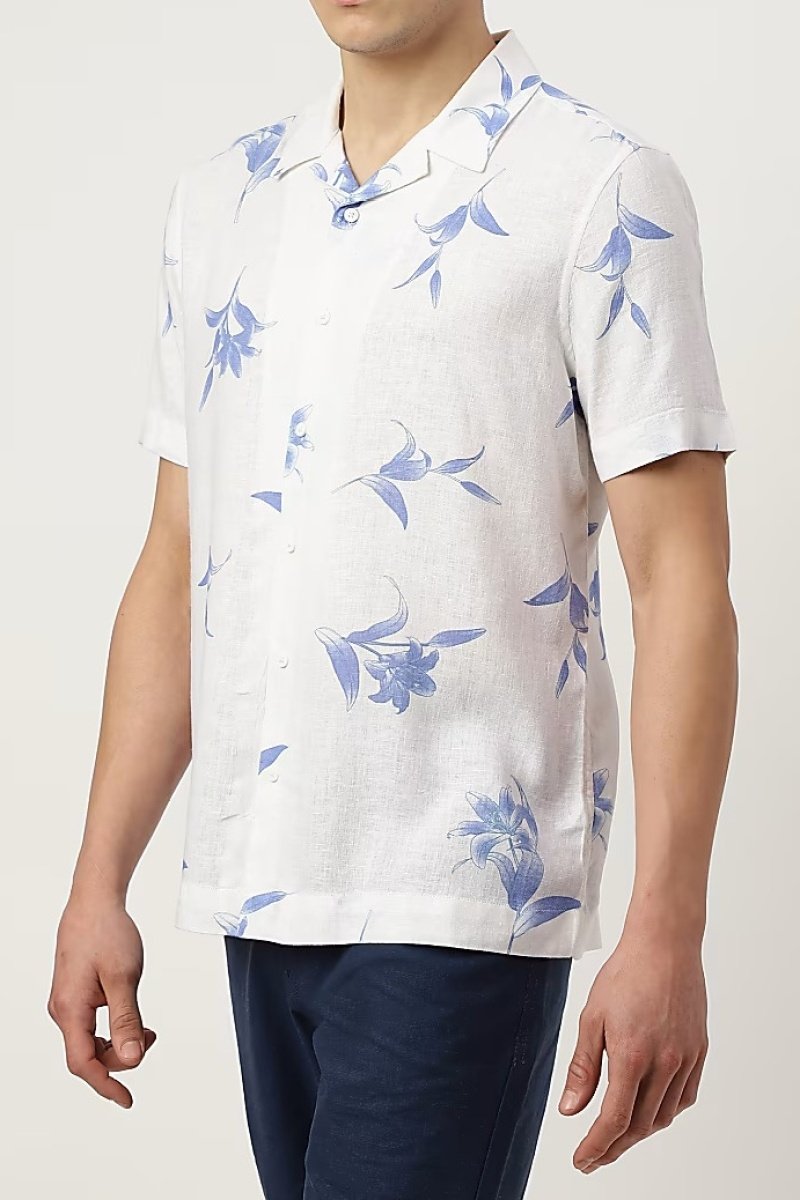Chemise en lin mélangé à manches courtes.