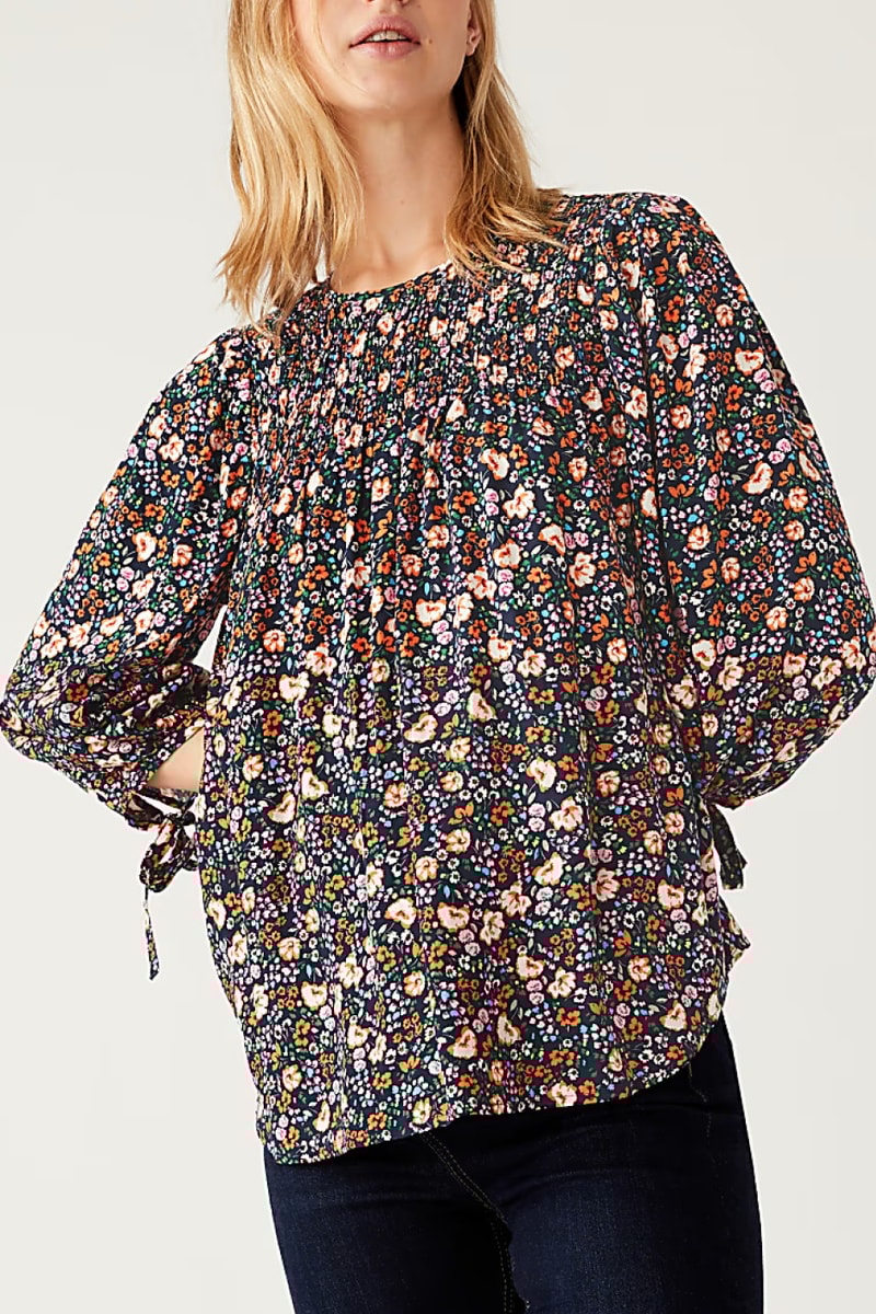 Blouse à manches 3/4 avec liens à nouer.