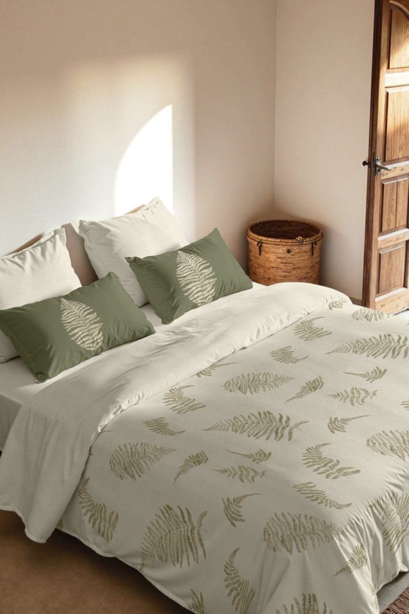 Housse de couette réversible en percale de coton 79 fils/cm² Biar - Kaki et gris clair