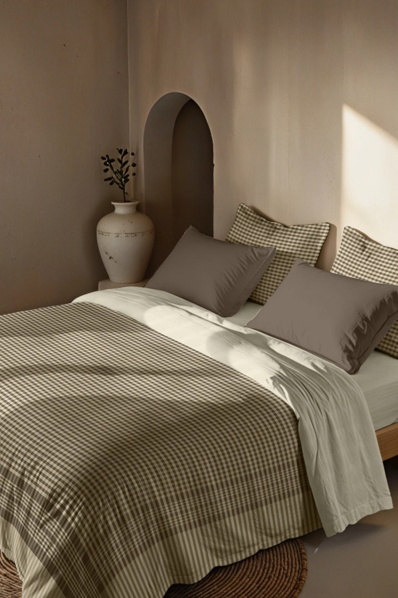 Housse de couette réversible en percale de coton 79 fils/cm² Prades - Marron