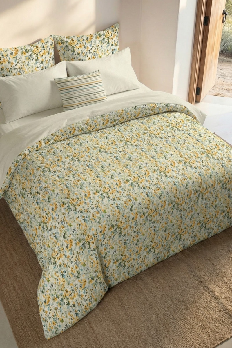 Housse de couette réversible en percale de coton 79 fils/cm² Catadau - Ecru et vert foncé