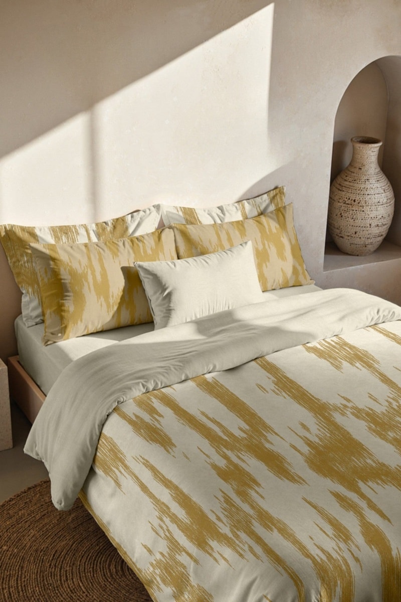 Housse de couette réversible en percale de coton 79 fils/cm² Mahón - Moutarde