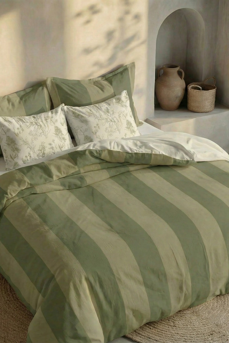 Housse de couette réversible en percale de coton 79 fils/cm² Romani - Vert