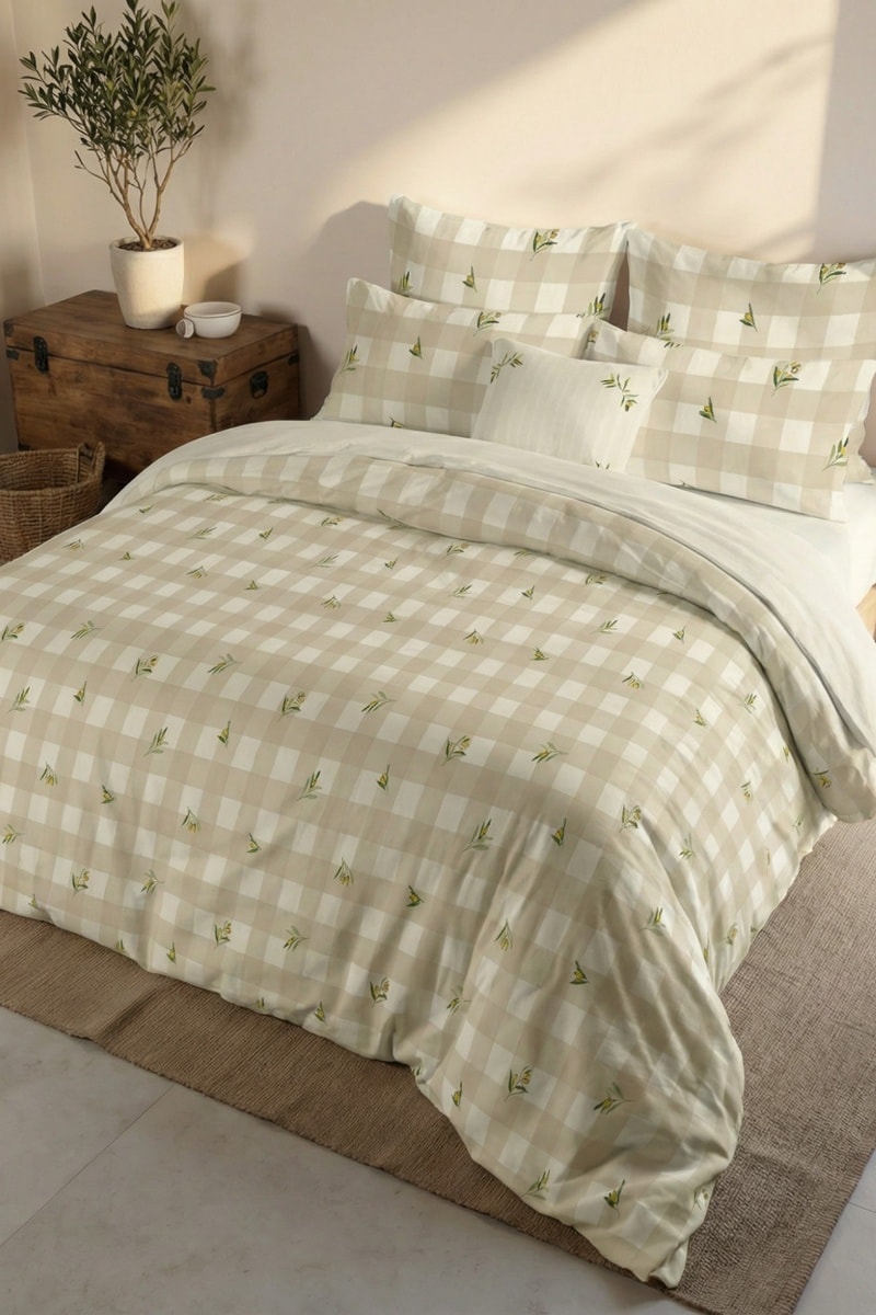 Housse de couette réversible en percale de coton 79 fils/cm² Sella - Beige