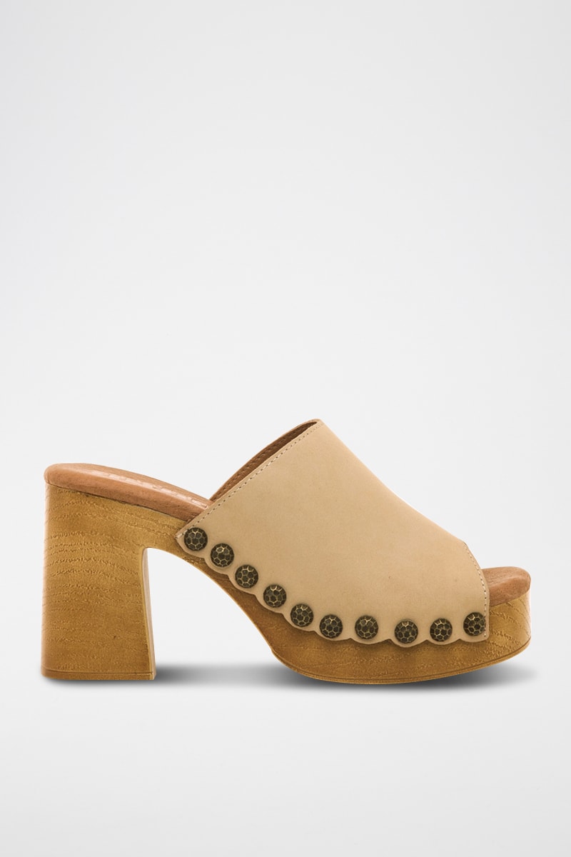 Mules à talons en cuir Coyote - Beige