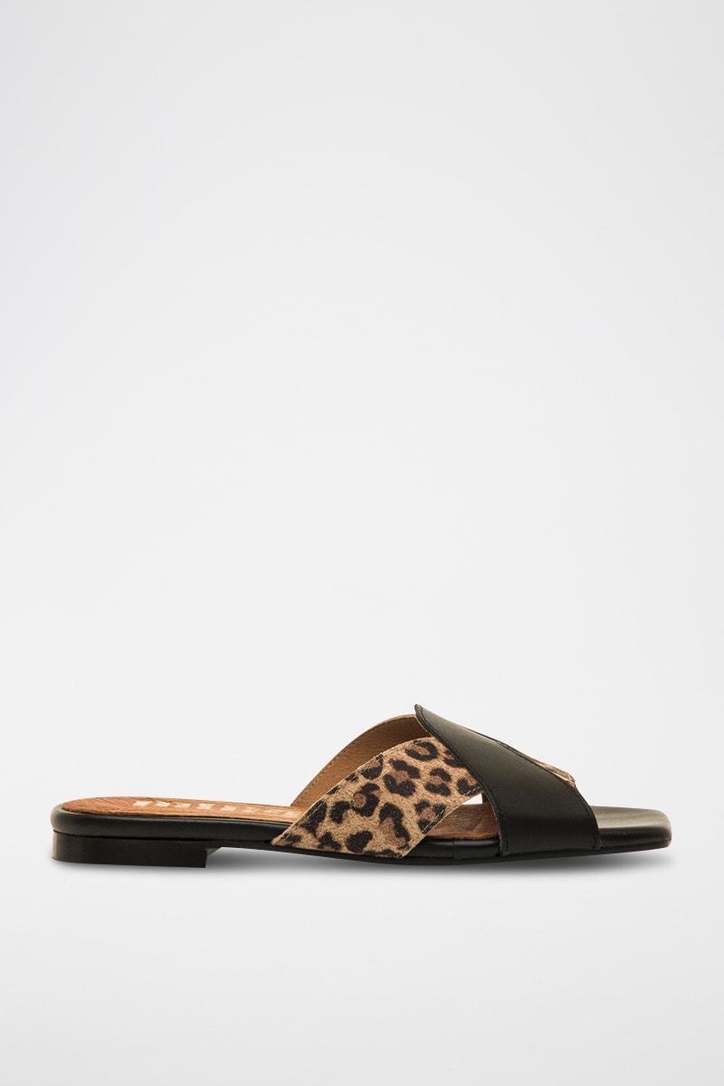 Brides croisées dont 1 à motifs léopard devant.
