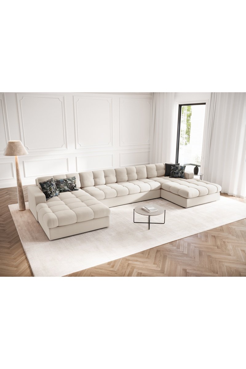 Canapé d'angle panoramique gauche Yohan - Beige - 5 places - En tissu polyester