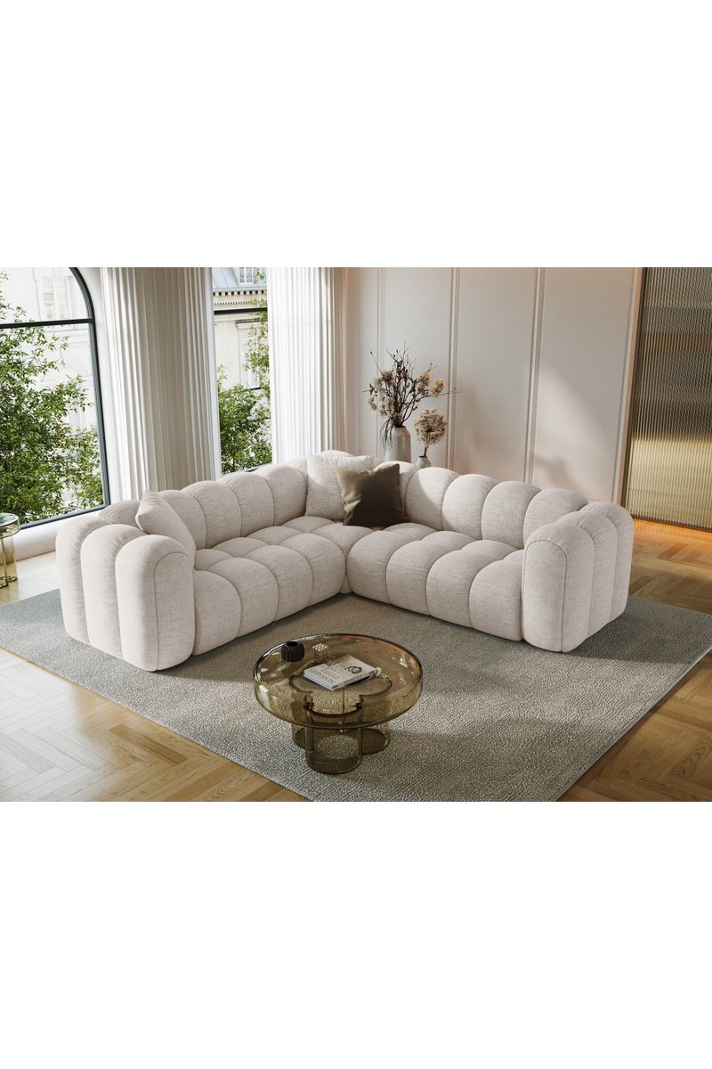 Canapé d'angle symétrique modulaire Arden - Beige - 5 places - En tissu structurel