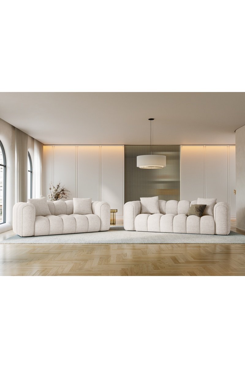Canapé en bois Arden - Beige - 3 places - En tissu structurel