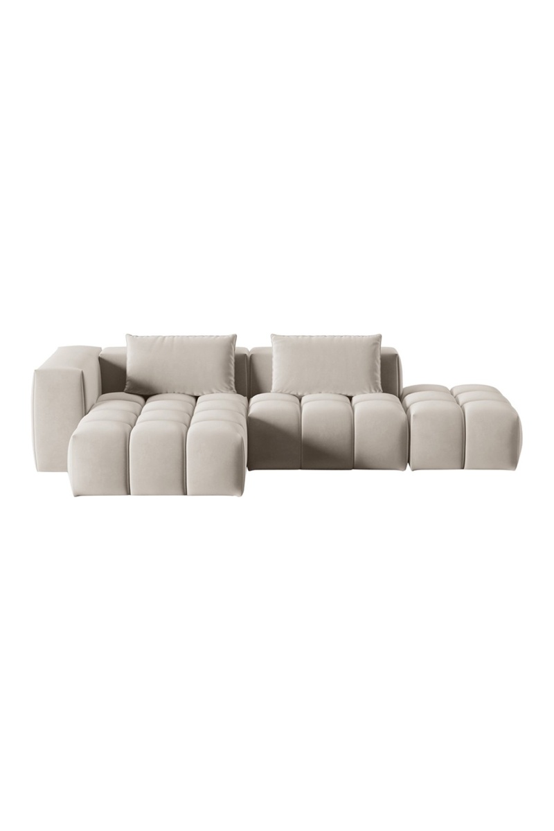 Canapé d'angle gauche modulaire Lorella - Beige clair - 4 places - Revêtement en velours