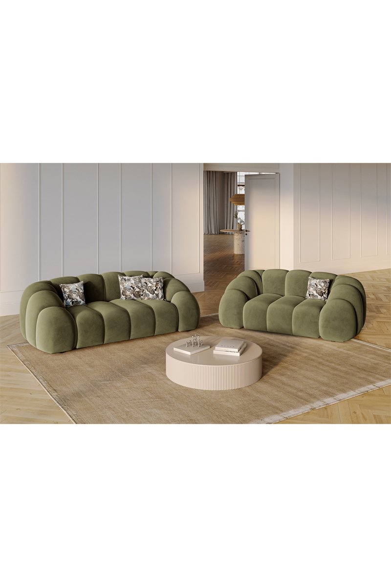 Canapé Lyna - Vert olive - 2 places - En tissu velours
