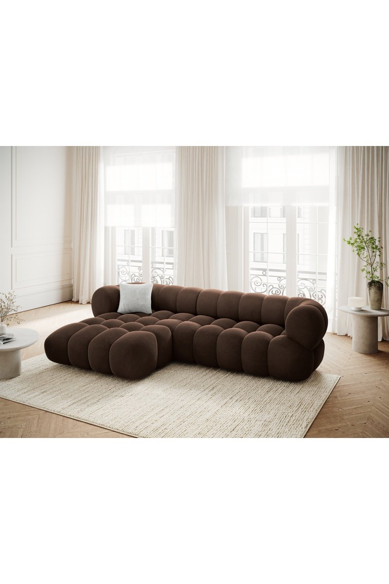 Canapé d'angle gauche modulable Maurice - Marron - 3 Places - Tissu velours