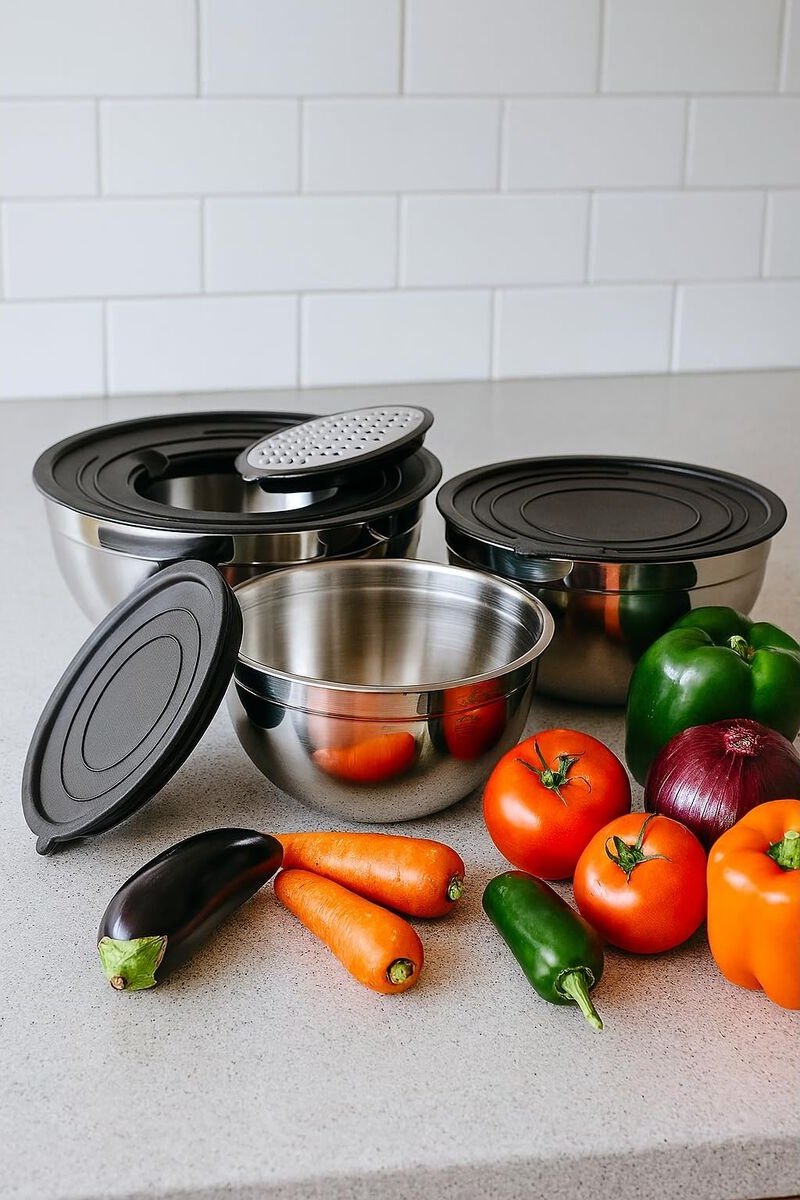 Batterie de cuisine en acier inoxydable comprenant :