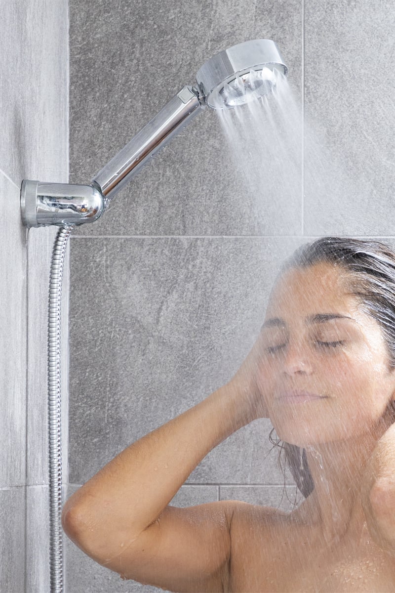 Pommeau de douche 3-en-1 avec distributeur.