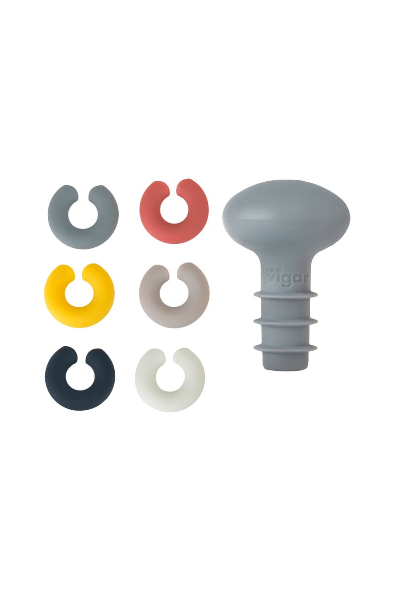 1 bouchon de bouteille à vin et 6 marque-verres en silicone