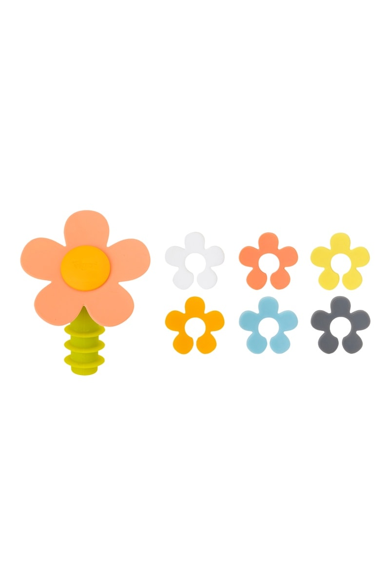 1 bouchon de bouteille à vin et 6 marque-verres en silicone
