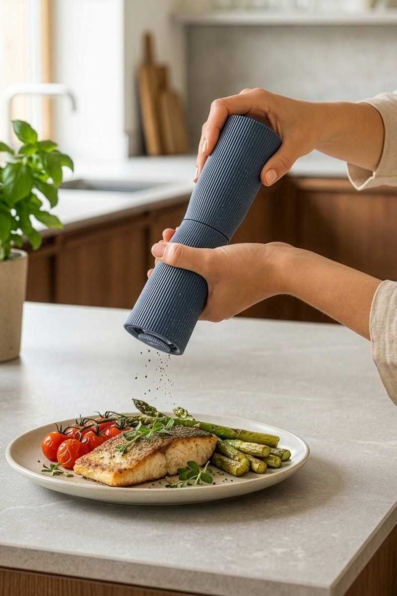 Moulin à sel et poivre en acier inoxydable et céramique.