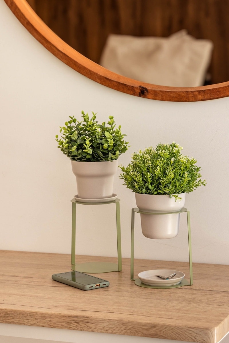 2 supports pour plantes - 15,5 x 13,5 x 29,5 cm - Vert et gris