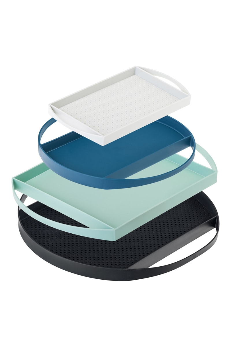 4 plateaux de service empilables dont 2 à motifs ajourés.