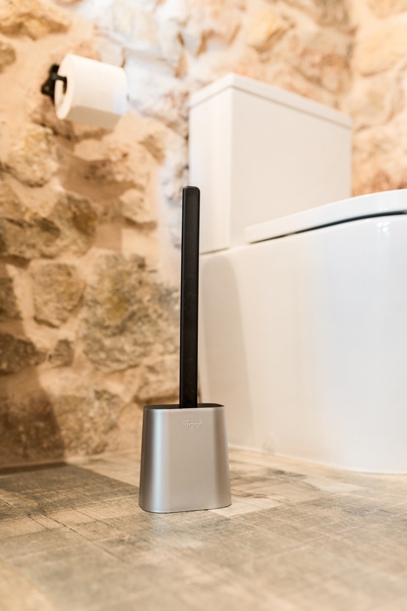 Brosse de toilette avec support.