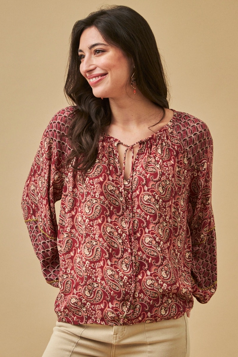 Blouse à manches longues raglan bouffantes.