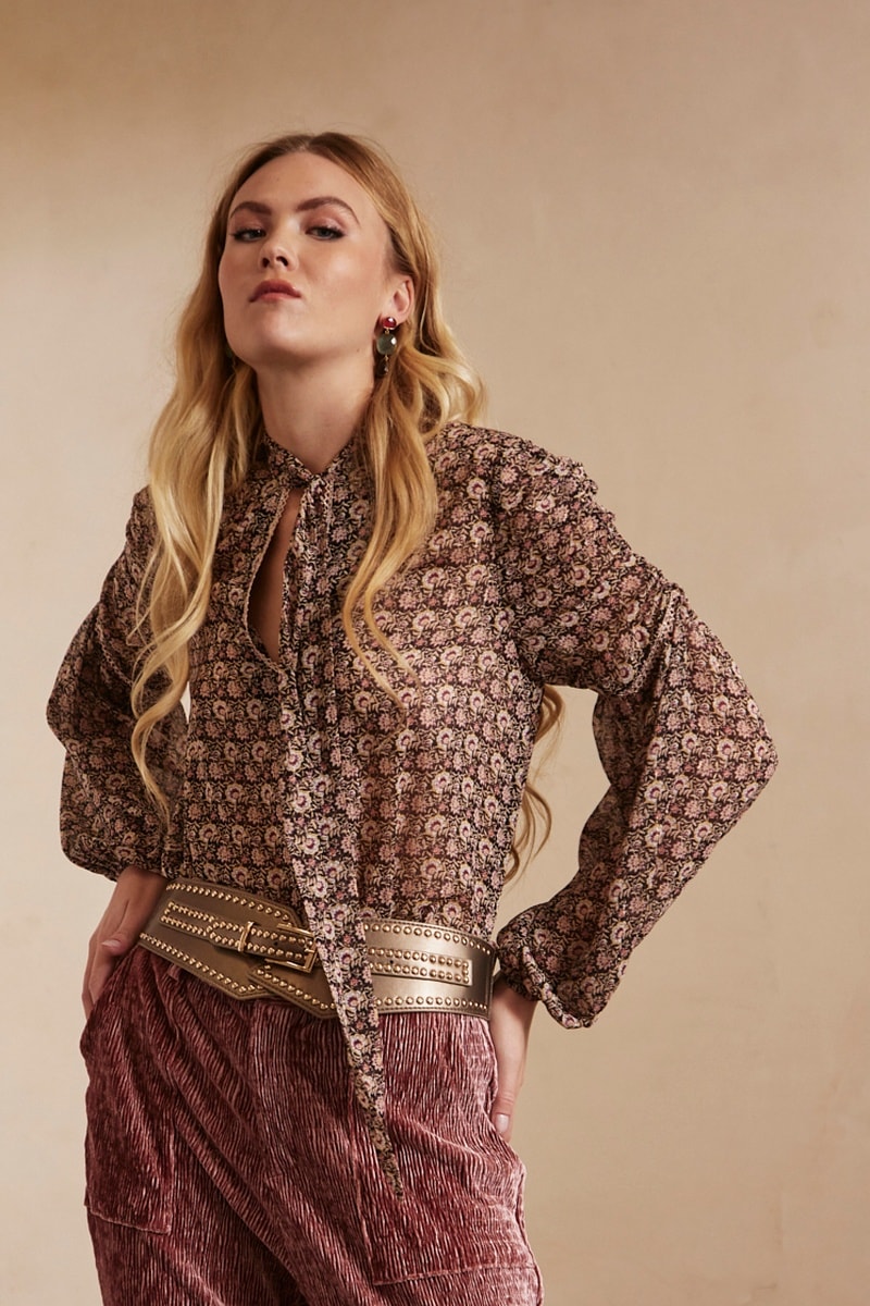 Blouse à manches longues élastiques avec fronces.