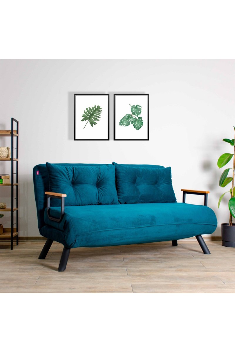 Canapé convertible Sando Como - Bleu canard - 2 places - Revêtement en polyester