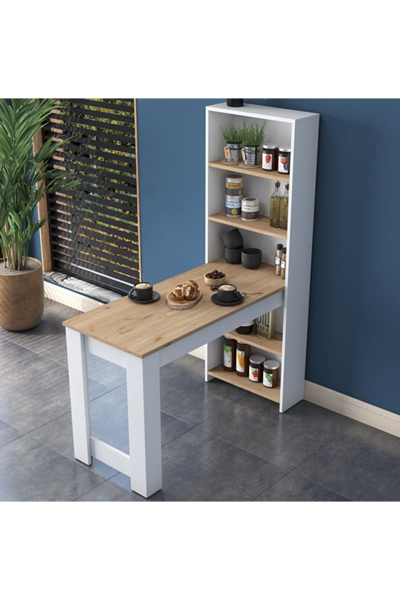 Table de cuisine avec étagère - 120 x 154 x 54 cm